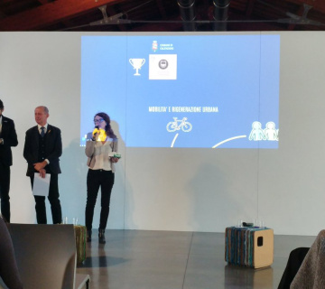 MOBILITA’ E RIGENERAZIONE URBANA - Anche qui un ex aequo. Da stazione a spazio culturale condiviso ( Con la riapertura pubblica dell’edificio della stazione, è stato dato uno spazio alle tante associazioni del territorio, che svolgono ruoli sociali, culturali o di protezione civile. Si è creato così un polo civile a Calenzano, dove vengono organizzate attività) presentata dal Comune di Calenzano. Un progetto che reso evidente quanto un luogo dimenticato possa tornare ad essere un punto centrale della comunità. Bike sarin free floating (I l servizio di Bike Sharing free floating del Comune di Firenze gestito tramite mobile app permette di risolvere il problema del c.d. ultimo miglio attraverso l'utilizzo di velocipedi tecnologicamente avanzati dotati di lucchetto autosbloccante tramite app mobile. I veicoli disponibili sono mostrati dall'App su mappa tramite il gps integrato nel telaio. I veicoli possono essere presi e lasciati in qualsiasi zona del Comune di Firenze). Una piccola rivoluzione che, visto il successo riscontrato a Firenze, si sta adesso diffondendo adesso anche in altre città italiane.