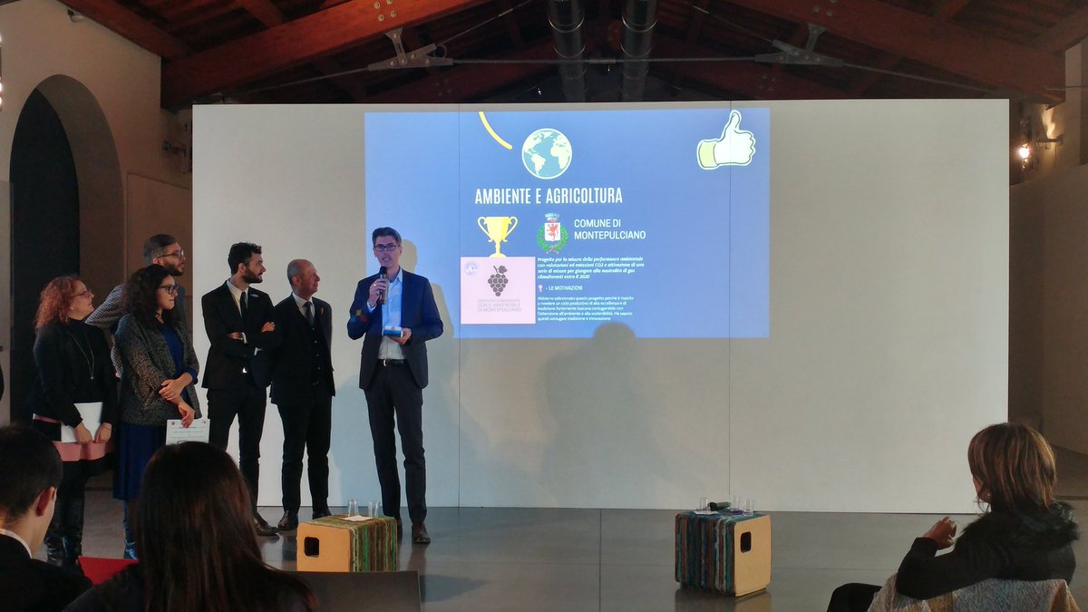 AMBIENTE E AGRICOLTURA - La buona pratica vincitrice è Emissioni compensate con il vino Nobile di Montepulciano (Progetto per la misura della performance ambientale con valutazioni ed emissioni CO2 e attivazione di una serie di misure per giungere alla neutralità di gas climalteranti entro il 2020.) presentata dal Comune di Montepulciano.