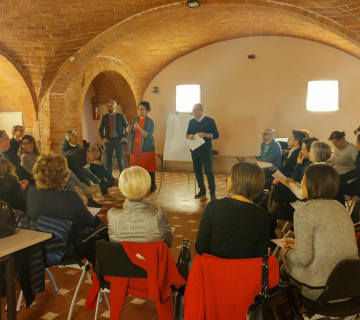 L'incontro di Sinalunga si è tenuto giovedì 5 aprile al Teatro Ciro Pinsuti. Ha avuto inizio con un incontro a impronta partecipativa rivolto ai territori della Valdichiana aretina e senese. Attraverso un confronto diretto e partecipato tra amministratori, enti, scuole, associazioni, aziende, cooperative, operatori ed esperti del settore sono state approfondite le potenzialità di sviluppo per gli ambiti della Valdichiana senese ed aretina. Nell’ambito dell’incontro è stato dedicato un tavolo di lavoro specifico per le scuole, come presentazione dei cantieri di narrazione identitaria: laboratori per rendere i ragazzi protagonisti della scoperta e della valorizzazione del territorio in cui vivono.